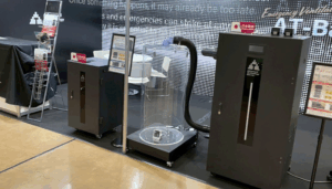 弊社ブースでは、CBRNE(化学・生物・放射性物質・核・爆発物)対策に対応した災害用換気システム「ATバリア」シリーズを展示いたしました(ATバリア150とATバリアLITE)。本製品は、日本国内で設計・製造された高性能換気装置で、防衛分野のみならず、災害対策や医療などの幅広いシーンでの活用も視野に入れた製品です。シェルターに限らず、幅広い防災面での活用ができる製品として、展示いたしました。